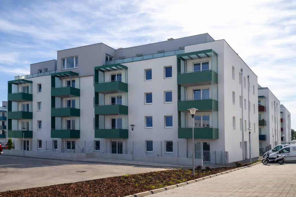 DATEN Grundstücksfläche: 12.437 m² Bebauungsfläche: 3.296 m² 179 Wohnungen 2-4 Zimmer Nutzflächen (Terrassen, Balkone, Eigengärten)